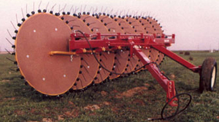 Darf 3 point mounted turning rakes reduce hay curing time. Wet harvest years make this machine a must in grain as well as hay. 3 wheel model will handle up to 65” windrows, 4 wheel up to 84”. Features Cat. 1 3 pt. and swings behind tractor for transport.
